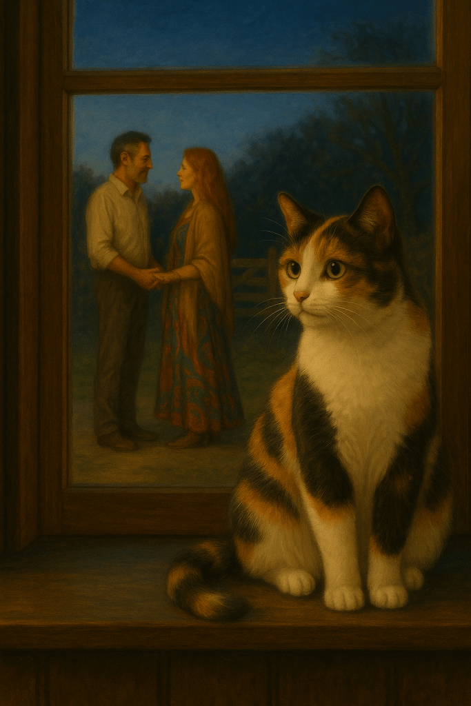 Regresaron caminando en silencio, con el aire frío de la madrugada rozando sus rostros. En la puerta de su casa, un beso suave cerró la noche. Calicó, desde la ventana, observaba como si hubiera esperado ese momento toda la vida.
