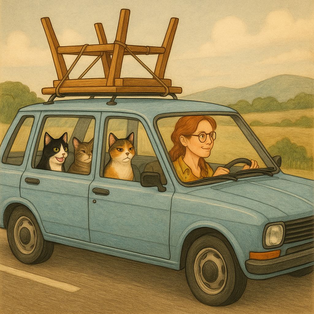 Su vida es un viaje constante: pueblos, ciudades y caminos que se cruzan con personajes tan reales como entrañables, en una Argentina que late entre lo cotidiano y lo histórico. Sus tres gatos, cada uno con su personalidad marcada, son testigos y cómplices silenciosos de sus aventuras.